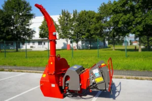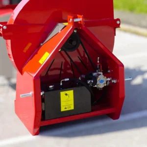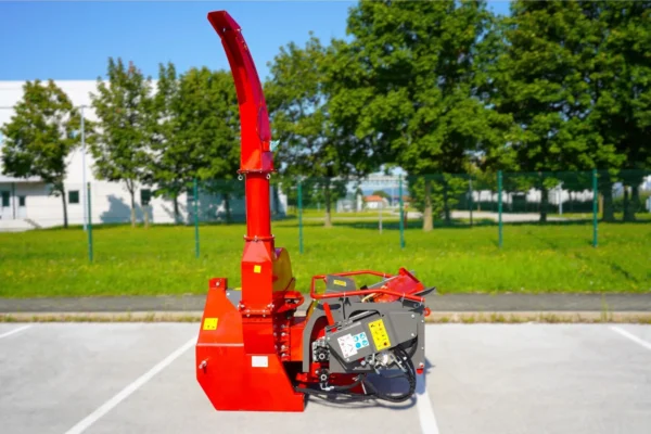 Izmet sekancev poteka preko vrtljive izmetne cevi z nastavljivim naklonom in smerjo, kar omogoča natančno usmerjanje materiala v prikolico ali neposredno na kup.