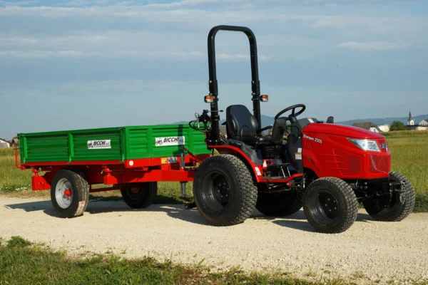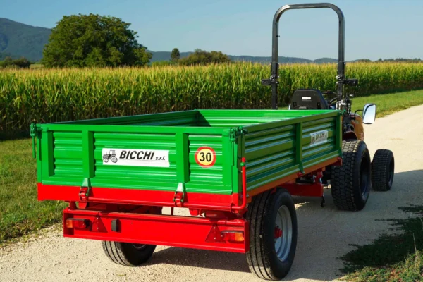 Enoosna kmetijska prikolica Bicchi PKE 2.7 t je italijanska prikolica z nizkim podvozjem, namenjena prevozu različnih vrst tovora pri delu na kmetiji ali pri urejanju okolice. Zaradi nizke izvedbe omogoča enostaven naklad in razklad gajb, razsutega materiala, prevoz mini bagrov,… Prikolica je zasnovana za uporabo z manjšimi in srednje velikimi traktorji, ena os pa omogoča dobro okretnost in lažje manevriranje na ozkih poteh in dvoriščih.
