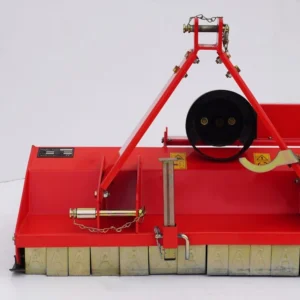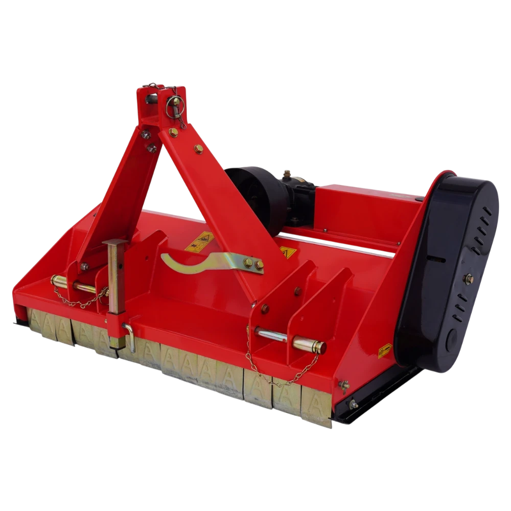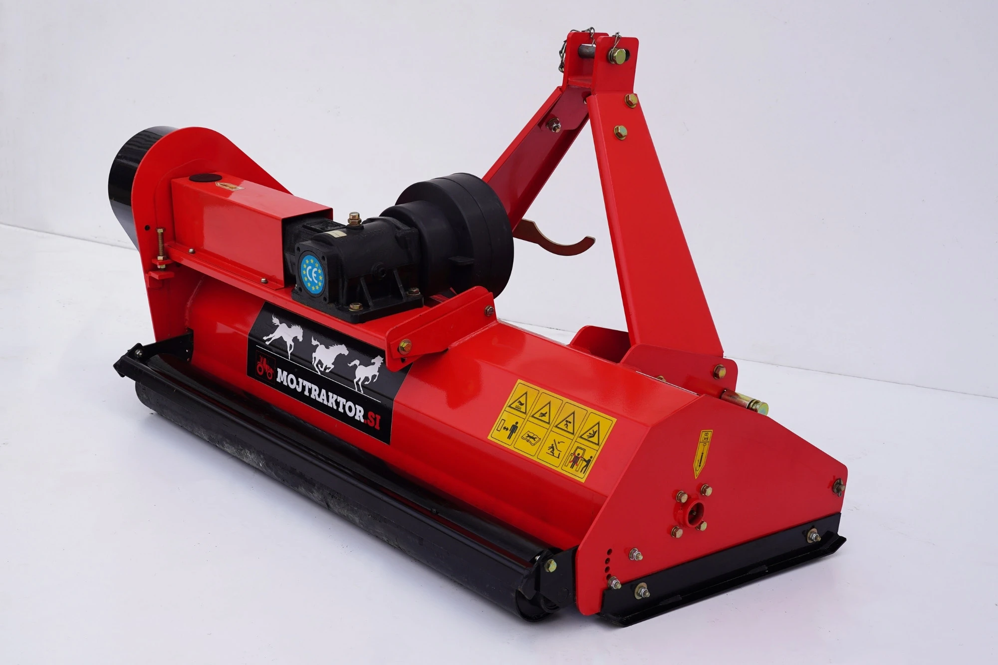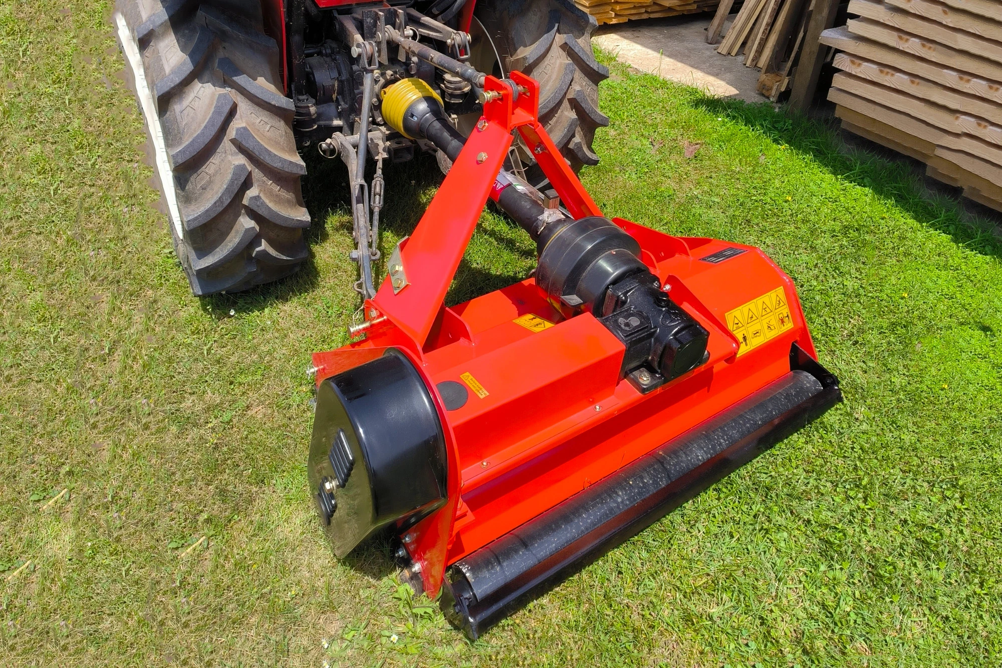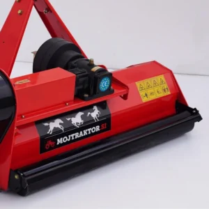 Mulčer je opremljen s kladivarji, ki zagotavljajo enakomerno drobljenje vegetacije in čisto obdelano površino. Moč traktorja se preko kardanske gredi, ki je vključena v ceno, prenaša na rezalno gred, medtem ko zobniški prenos v sredini mulčerja omogoča zanesljivo in mirno delovanje. Vgrajena sklopka v reduktorju skrbi za varnost pri delu in zaščito pogonskih komponent ob večjih obremenitvah.