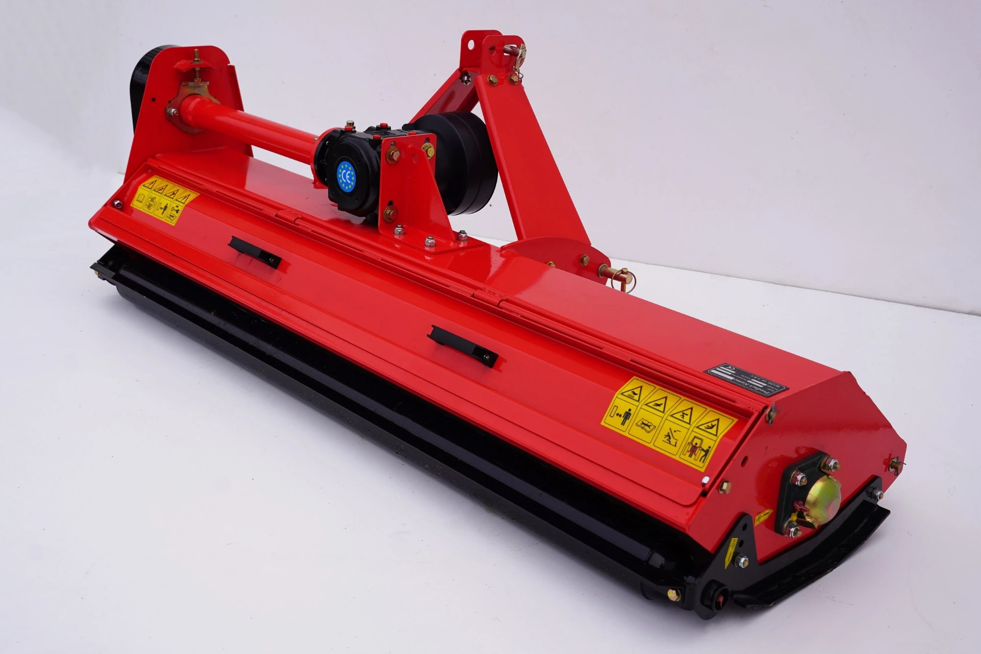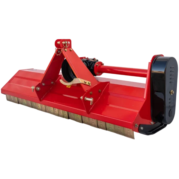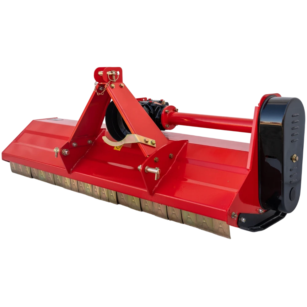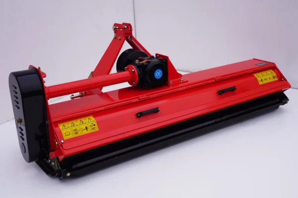 Mulčar je opremljen s fiksnim pomikom, tritočkovnim priklopom in velikim reduktorjem s sklopko, ki zagotavlja zanesljivo delovanje tudi pri večjih obremenitvah. Prenos moči poteka preko treh jermenov, kar omogoča stabilno in mirno delovanje.