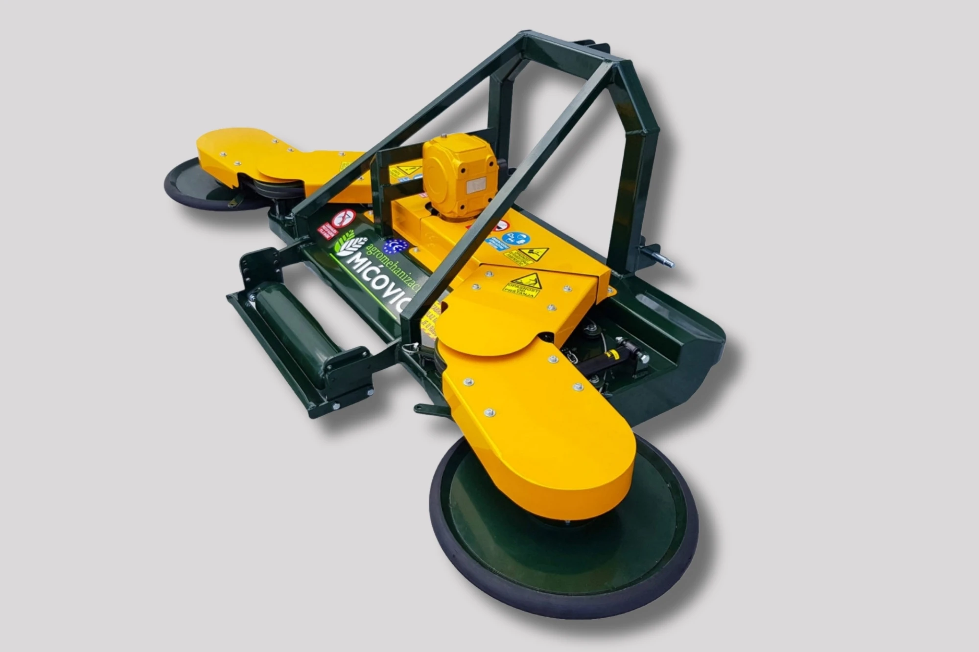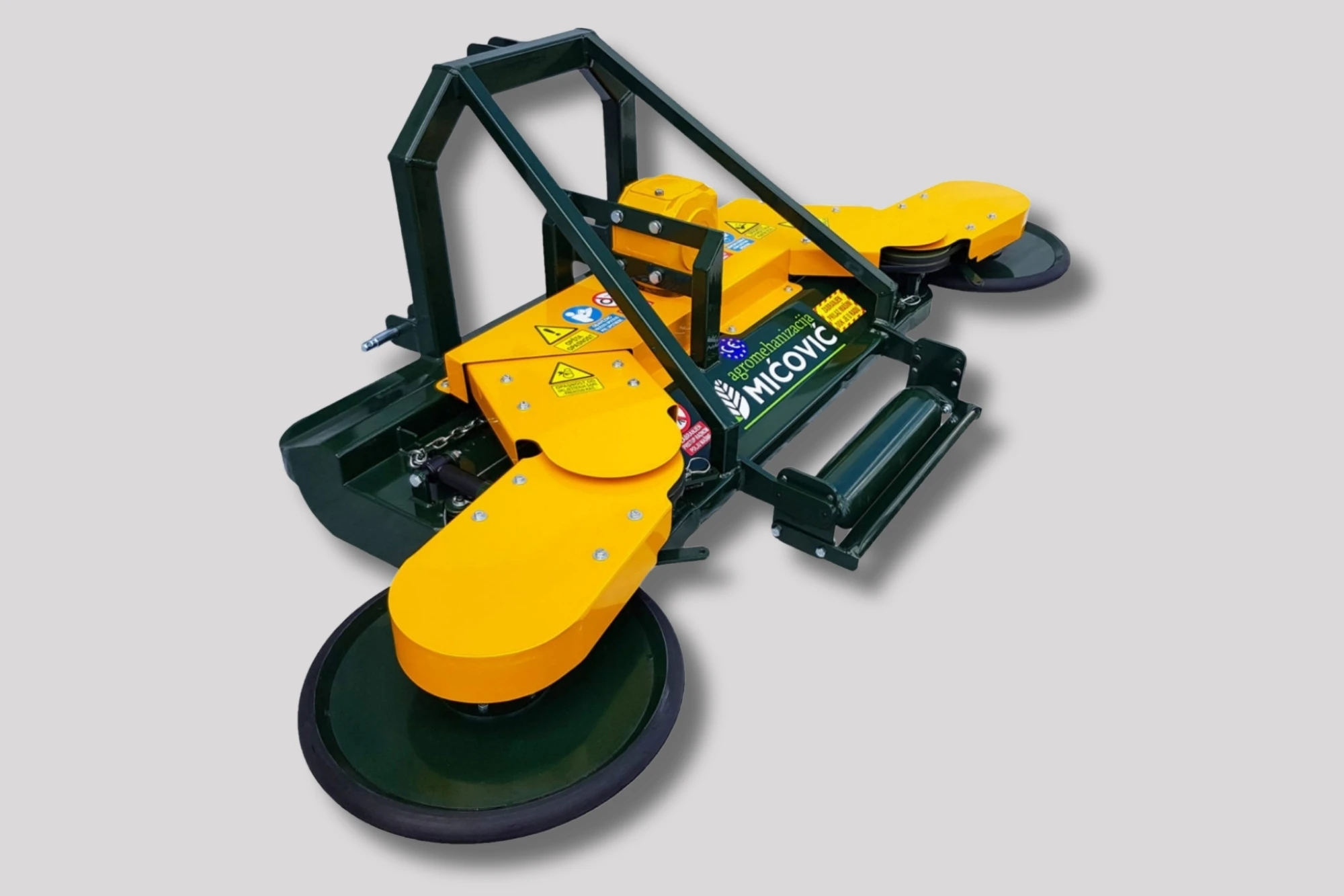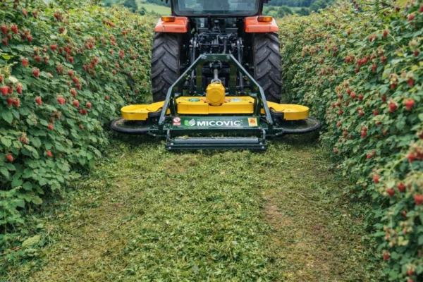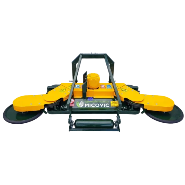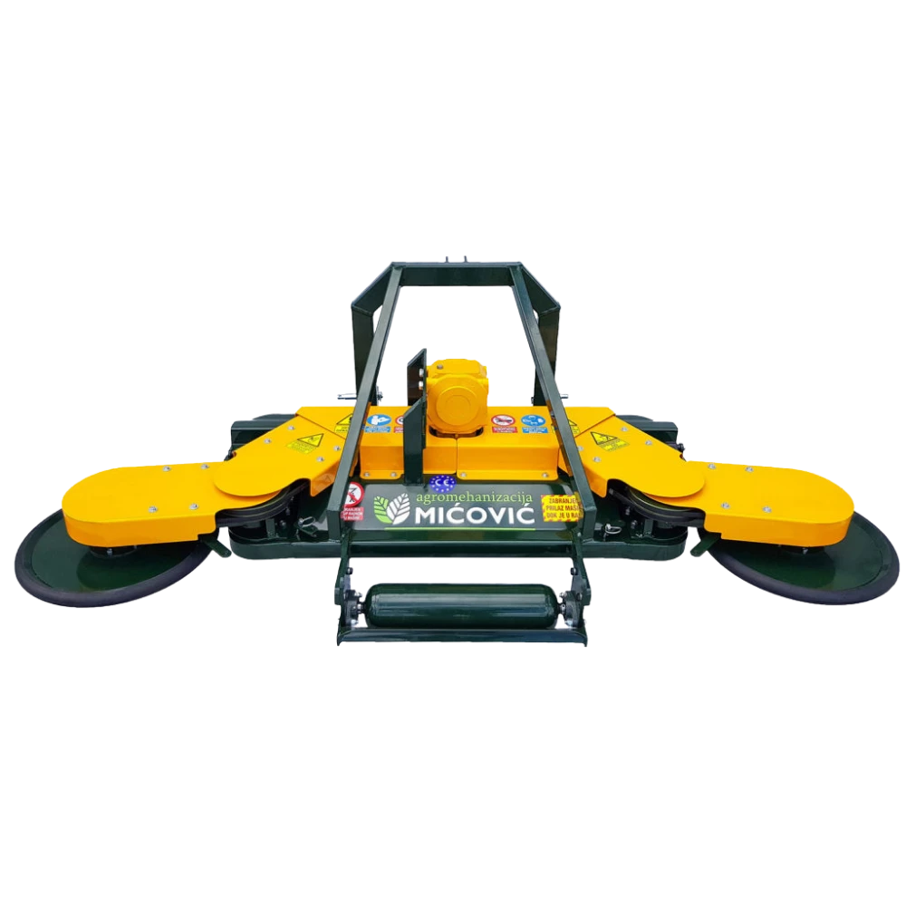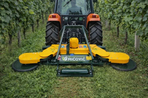Mulčar Mićović DAD 200 z dvojnim bočnim diskom je zasnovan za profesionalno mulčanje večjih vinogradniških in sadjarskih površin, kjer sta ključni visoka storilnost in popolna obdelava prostora med vrstami. Učinkovito deluje v visoki travi in gostem grmovju, dva bočna diska pa omogočata sočasno košnjo med trtami in drevesi na levi in desni strani. Takšna zasnova omogoča enakomerno obdelano površino v enem prehodu ter bistveno skrajša čas dela na večjih površinah.