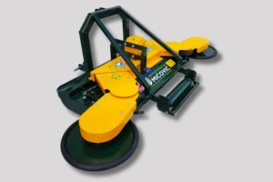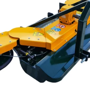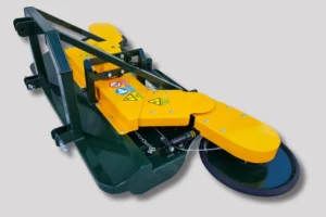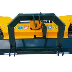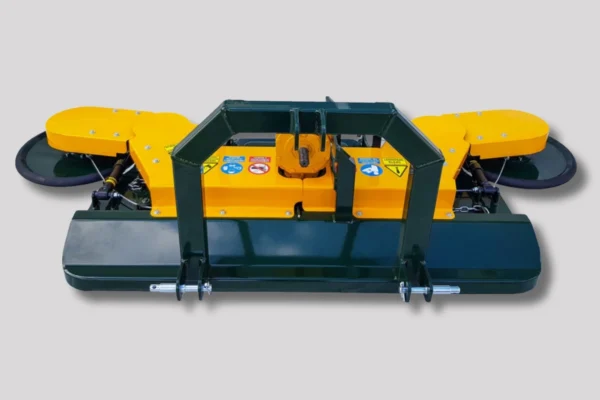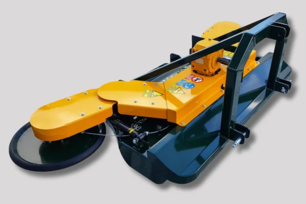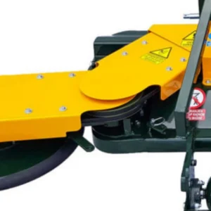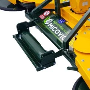 Opremljen je s tritočkovnim priklopom za stabilno priključitev in nastavljivim valjem, ki omogoča prilagoditev delovne višine glede na teren in količino vegetacije. Velika izmetna odprtina in prostorna komora zagotavljata nemoten pretok mase ter učinkovito drobljenje tudi pri večjih obremenitvah. Oba stranska diska imata mehanski odmik z regulacijo moči, kar omogoča varno in natančno delo ob rastlinah. Močno ohišje zagotavlja stabilnost, dolgo življenjsko dobo in zanesljivo delovanje v zahtevnih pogojih.