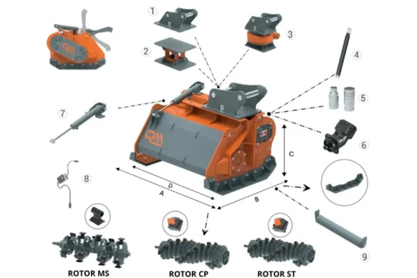 Ohišje z dvojnim dnom je izjemno odporno na močne udarce in deformacije, notranje zobate palice pa izboljšajo drobljenje materiala, kar pripomore k boljši učinkovitosti. Nastavljivo odpiranje pokrova rotorja omogoča natančno prilagoditev načina delovanja glede na vrsto vegetacije in teren, hidravlične in pogonske komponente pa so varno nameščene v notranjosti ohišja, kar podaljšuje njihovo življenjsko dobo.