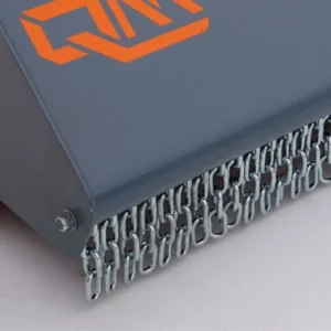 Robustno ohišje z dvojnim dnom povečuje odpornost proti udarcem in obrabi, konstrukcija pa omogoča mulčanje levo in desno, kar olajša delo ob robovih in na nagnjenih terenih. Notranja zobata palica dodatno izboljšuje drobljenje materiala, gred s kladivi in fiksnimi nosilci pa poskrbi za učinkovito sekljanje tudi zahtevnejše mase. Zadnji tlačni valj stabilizira stroj in omogoča boljše sledenje terenu.