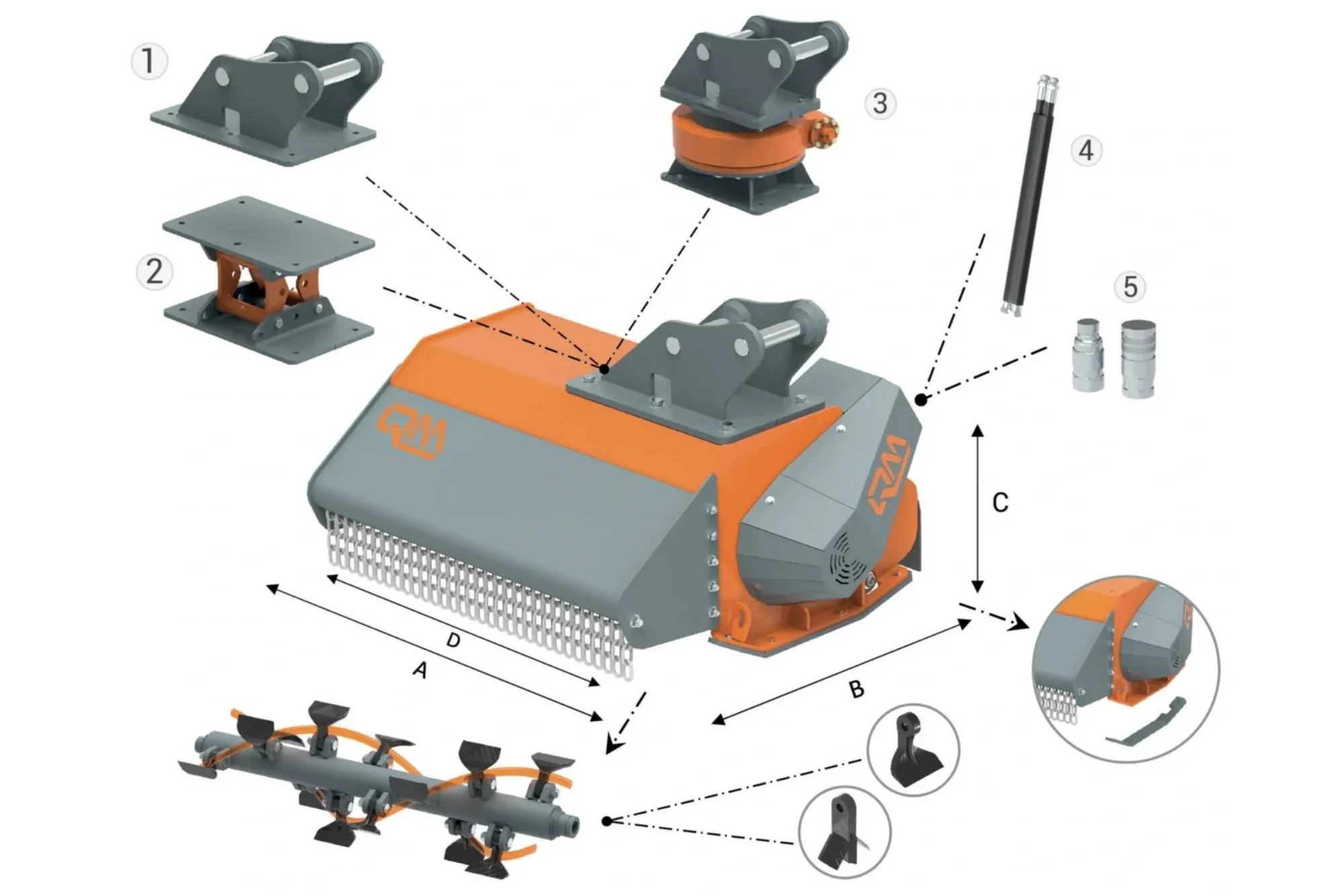 Mulčer za bagre QM SM 130 je zasnovan za zahtevnejše mulčanje visoke trave, goste podrasti in grmovja na brežinah, ob vodotokih, pod daljnovodi, ob gozdnih robovih, cestah, poteh ter na pašnikih, v sadovnjakih in vinogradih. Primeren je za bagre v razredu od 6 do 8 ton, kjer njegova masa 265 kg zagotavlja stabilno in mirno delovanje tudi pri večjih obremenitvah.