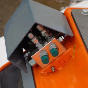 Direkten prenos skrbi za zanesljiv pogon in enostavno vzdrževanje. Hidravlični proti povratni ventil ščiti sistem pred tlačnimi sunki, dvojni priklop hidravličnih cevi pa omogoča delovanje brez potrebe po drenažni cevi. Zadnji tlačni valj izboljšuje sledenje terenu in stabilnost pri delu, zaščitna verižna zavesa pa zmanjšuje razmetavanje materiala. Zaščite so izdelane v skladu s CE normativi, hidromotor je dodatno varovan.