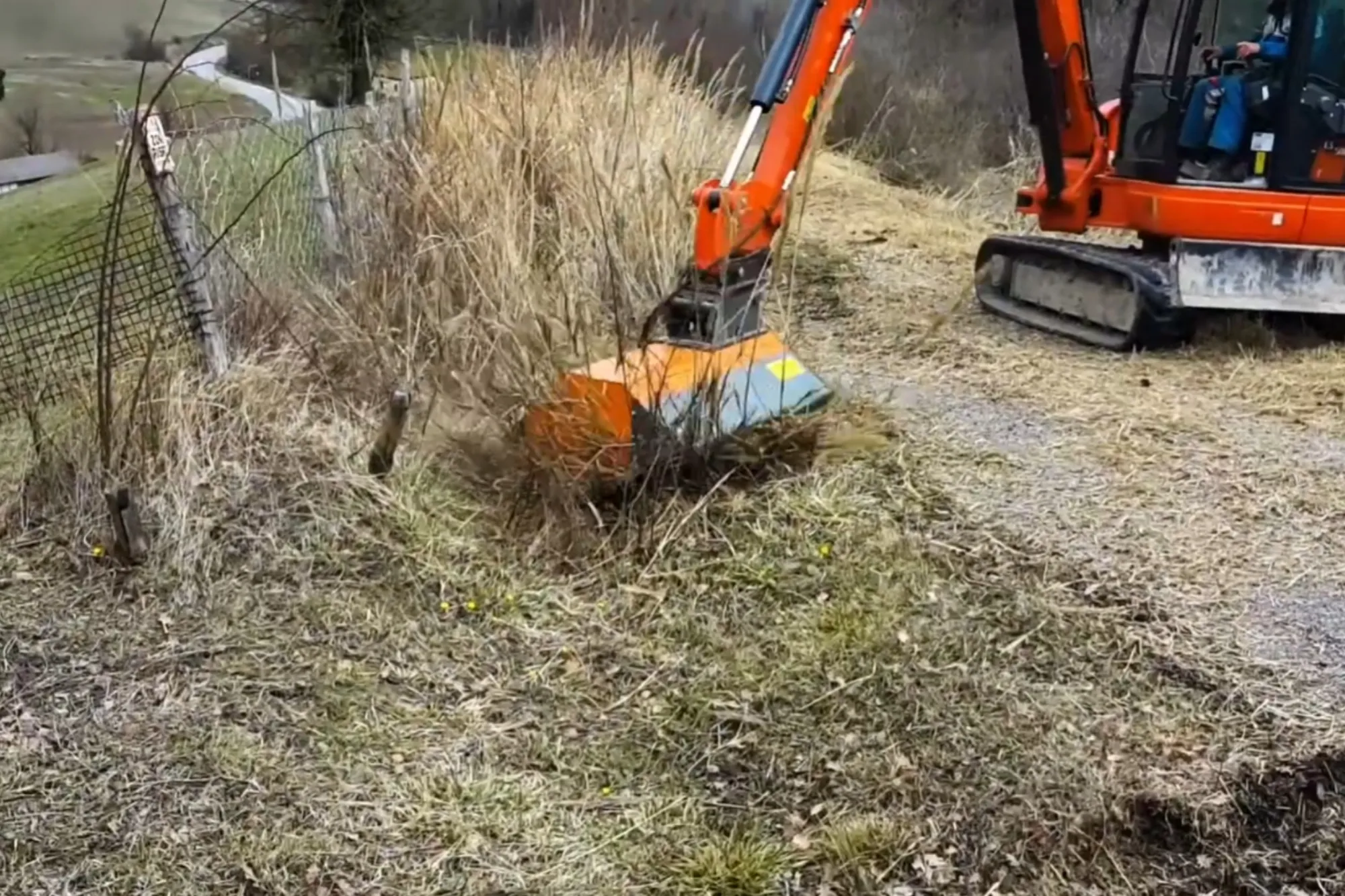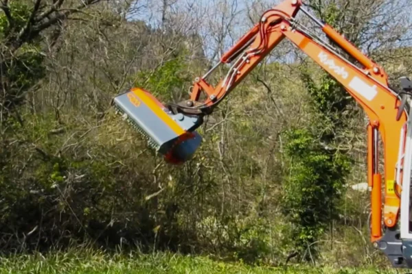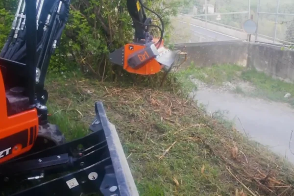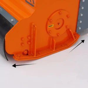 Ohišje je izdelano iz odpornih materialov in dodatno ojačano z dvojnim dnom, kar povečuje odpornost proti udarcem in obrabi. Omogoča mulčanje levo in desno, zato je delo ob robovih in brežinah natančnejše. Notranja zobata palica izboljšuje drobljenje materiala, spiralno nameščena kladiva pa zagotavljajo enakomeren rez in boljši pretok mase skozi komoro. Gred s kladivi in fiksnimi nosilci omogoča učinkovito sekljanje tudi debelejše lesne mase.