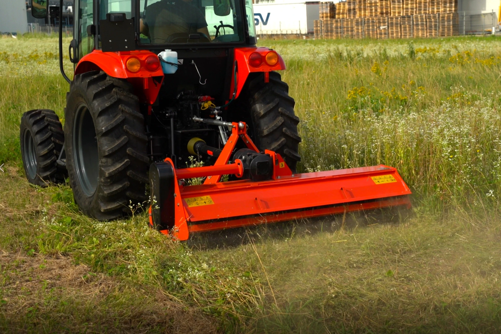 Za zaščito pogonskih komponent skrbi reduktor s sklopko, ki preprečuje poškodbe ob sunkovitih obremenitvah in podaljšuje življenjsko dobo stroja. Mulčar je opremljen z nastavljivim zadnjim valjem in nastavljivimi sankami, kar omogoča natančno nastavitev delovne višine ter dobro sledenje terenu. Močna konstrukcija je prilagojena redni in tudi profesionalni uporabi.