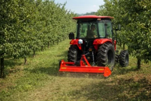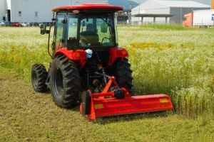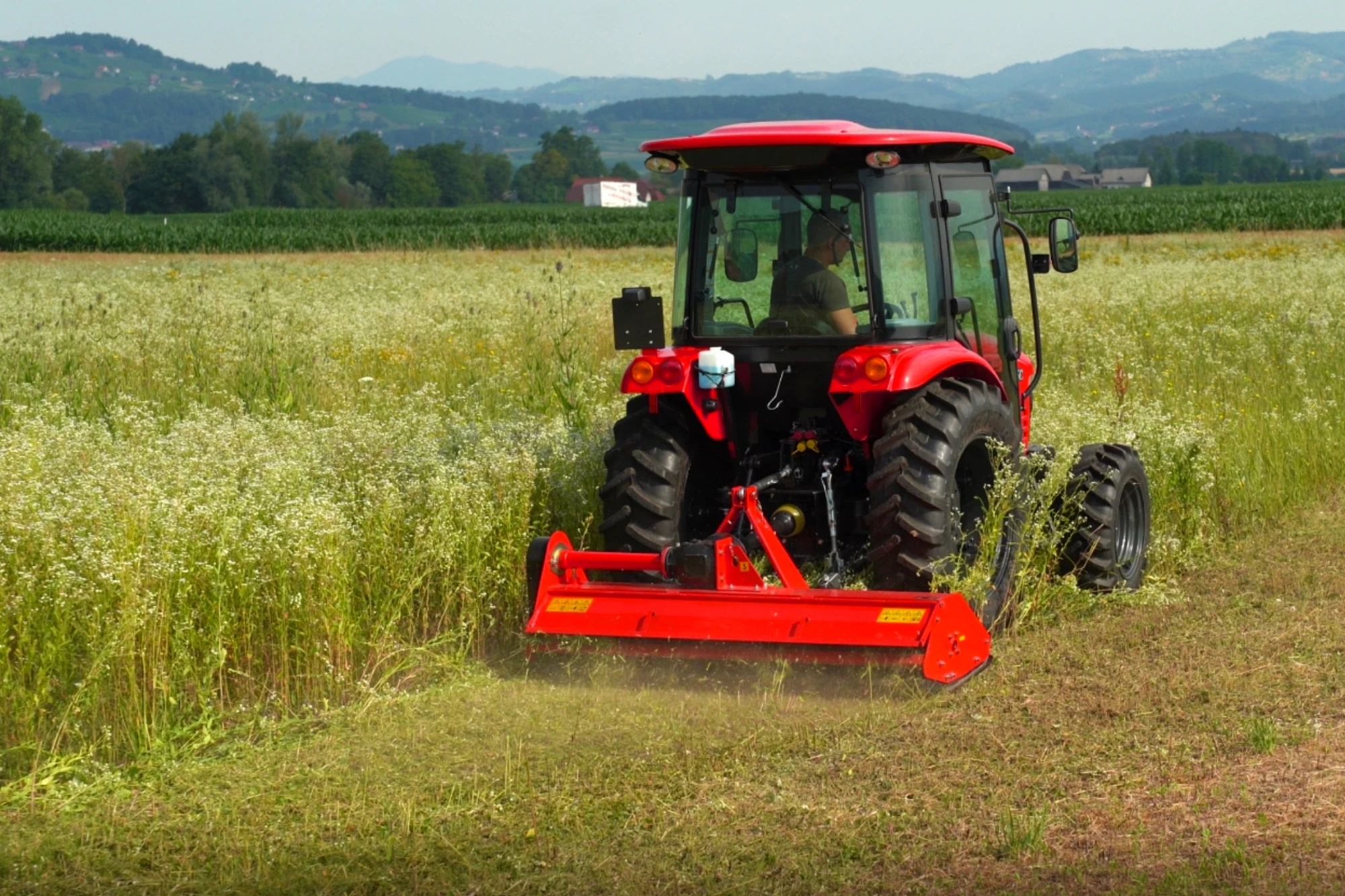 Mulčar ima delovno širino 135 cm in težo 290 kg, kar zagotavlja dobro ravnotežje med stabilnostjo in vodljivostjo. Kladivna izvedba omogoča enakomerno drobljenje materiala, zadnja izmetna vrata nove izvedbe pa izboljšujejo pretok mase skozi ohišje in omogočajo lažje delo pri večjih količinah ali gostejšem materialu. Takšna rešitev zmanjšuje obremenitve pogonskih komponent in prispeva k bolj enakomernemu končnemu rezultatu.