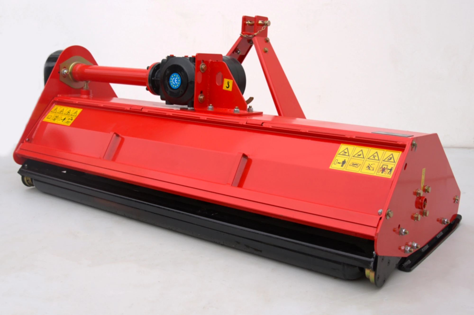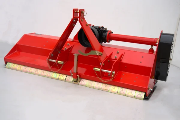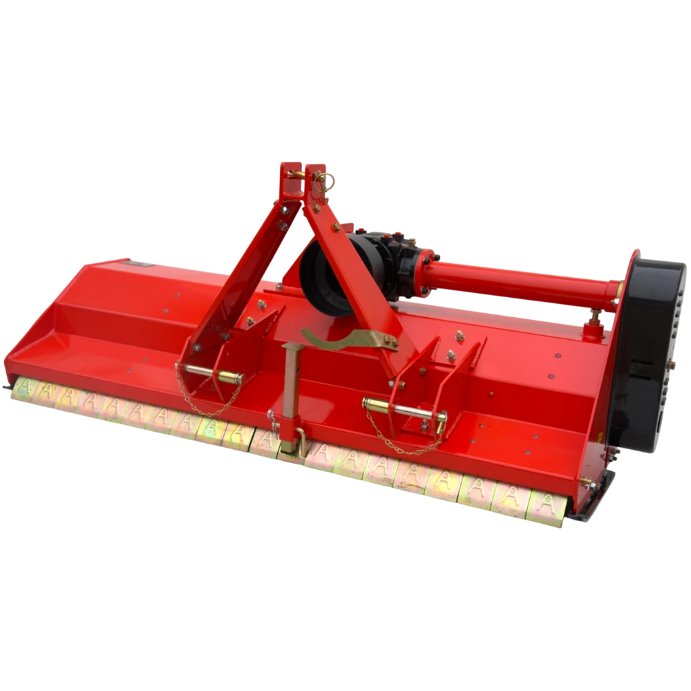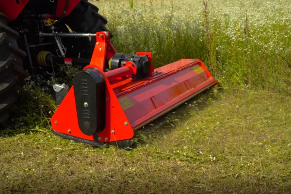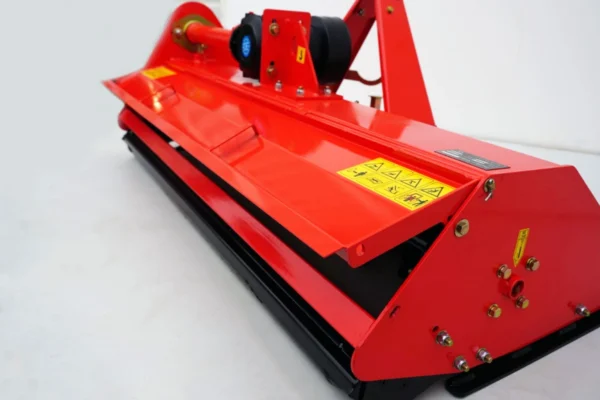Za zanesljiv prenos moči skrbi reduktor s sklopko, ki ščiti pogonske komponente pred sunkovitimi obremenitvami in podaljšuje življenjsko dobo stroja. Mulčar je opremljen z nastavljivim zadnjim valjem in nastavljivimi sankami, ki omogočajo natančno nastavitev delovne višine ter dobro sledenje terenu. Močno in masivno ohišje je prilagojeno redni in tudi profesionalni uporabi.