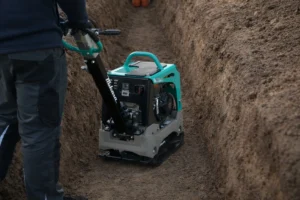 Potovalna hitrost 27 m/min pripomore k dobremu dnevnemu izkoristku, zato je stroj primeren za izvajalce, ki želijo kompaktno in učinkovito vibracijsko ploščo, a ne potrebujejo težjih modelov. Delovna plošča velikosti 595 × 400 mm omogoča natančno delo ob robnikih, zidovih ali v ozkih prostorih, kjer širši stroji niso primerni. Celotne dimenzije stroja (1030 × 400 × 965 mm) olajšajo transport, premikanje in uporabo na manjših gradbiščih.
